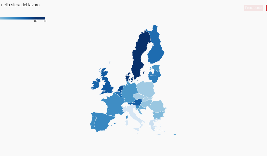L’Italia è migliorata in quasi tutte le sfere dell’uguaglianza di genere Aggiornato lunedì 24 Aprile 2023
