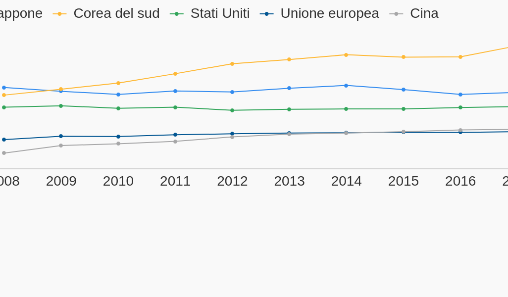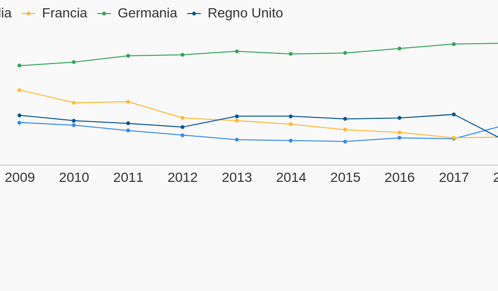 L’Ue non ha recuperato il gap con gli altri maggiori paesi industriali Aggiornato giovedì 27 Aprile 2023