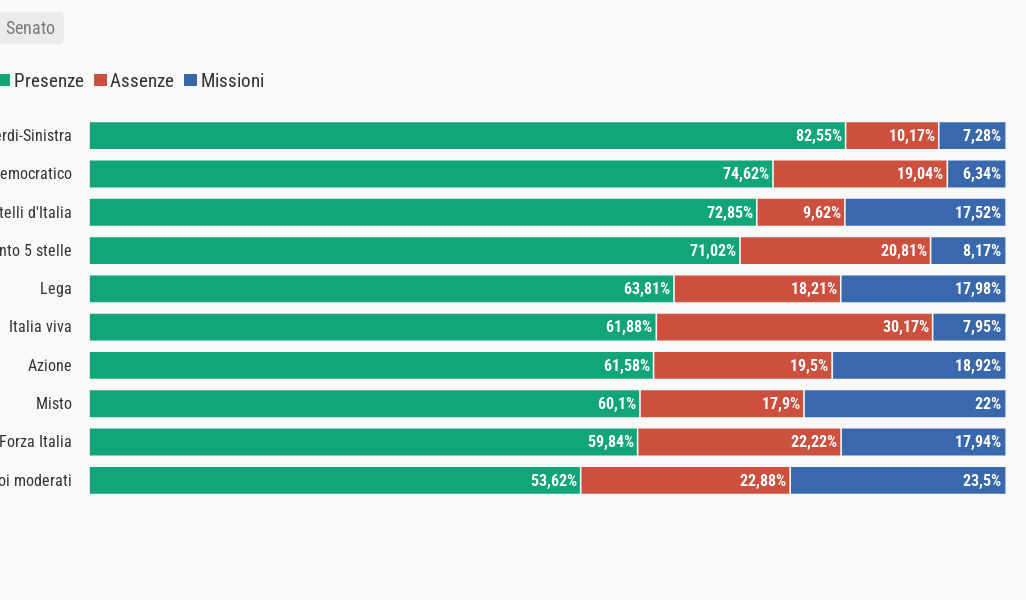 Nella XIX legislatura diminuiscono le assenze ma aumentano le “missioni” Pubblicato giovedì 24 Ottobre 2024