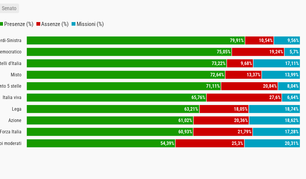Nonostante la media della partecipazione ai lavori delle camere sia piuttosto alta, ci sono ancora alcuni casi di assenteismo. Questo anche al netto degli incarichi di governo.