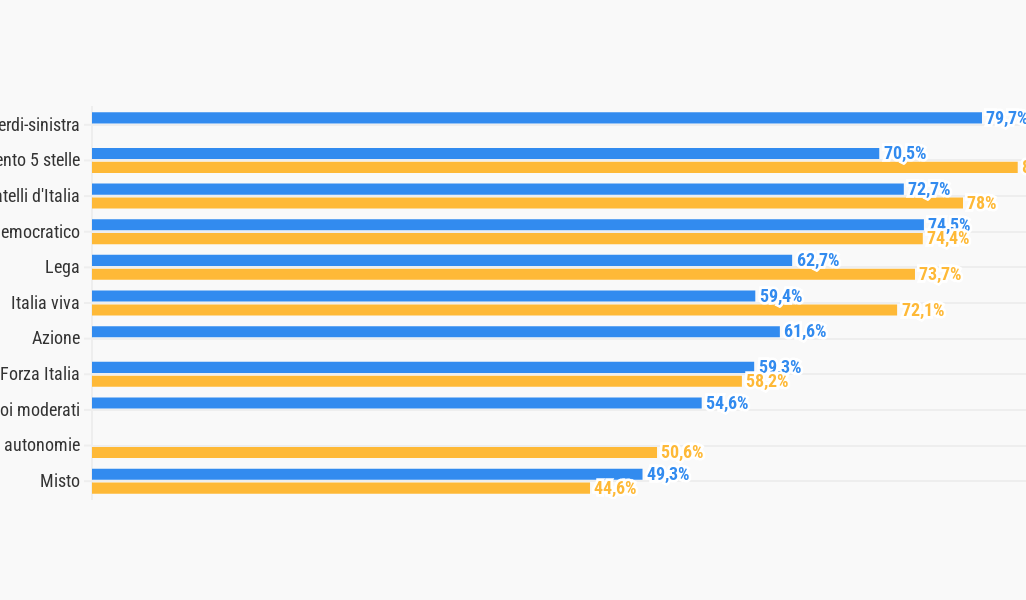 In Italia i parlamentari votano senza alcun vincolo di mandato. Il grado con cui le varie forze politiche riescono ad agire in maniera coordinata è però un elemento importante per capire la dinamiche parlamentari.