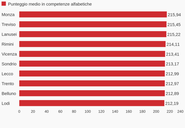 Gli ultimi 10 capoluoghi per competenze alfabetiche