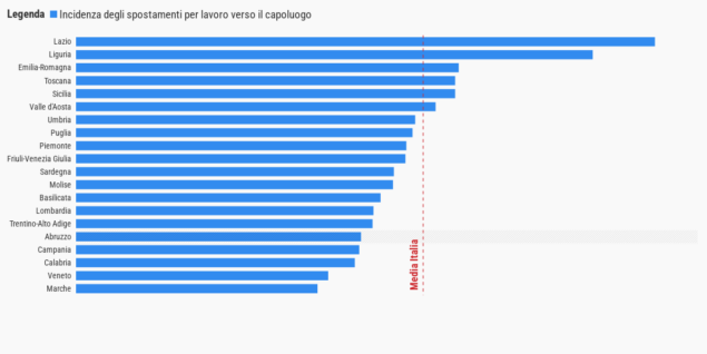 L’Abruzzo è una delle regioni con meno pendolarismo verso i capoluoghi