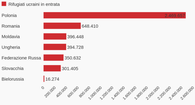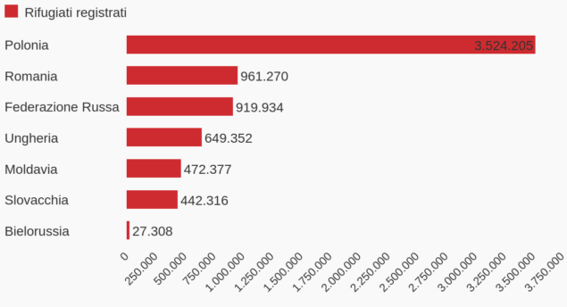 Quasi 6 profughi ucraini su 10 sono fuggiti verso la Polonia