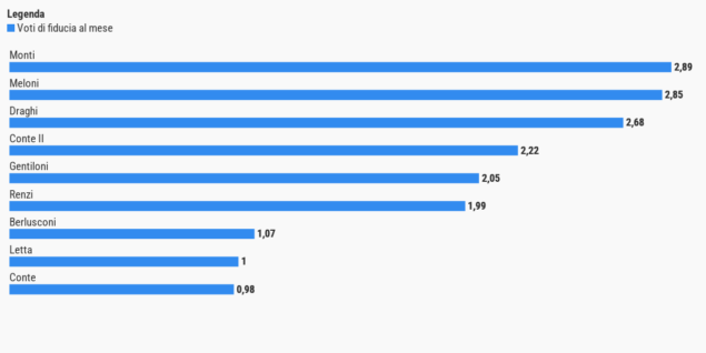 Con Meloni più questioni di fiducia rispetto ai governi Draghi e Conte II