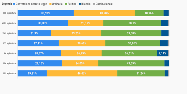 Il 37% delle leggi approvate nell’attuale legislatura sono conversioni di decreti