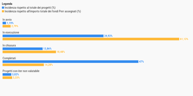 Progetti Pnrr, mediamente al sud si procede più lentamente