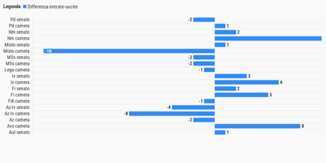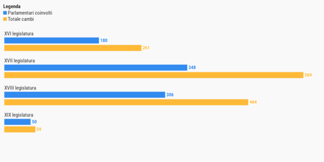 Nell’attuale legislatura una media di due cambi di gruppo al mese