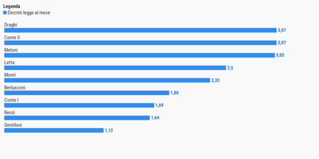 Il governo Meloni pubblica in media 3 decreti legge al mese