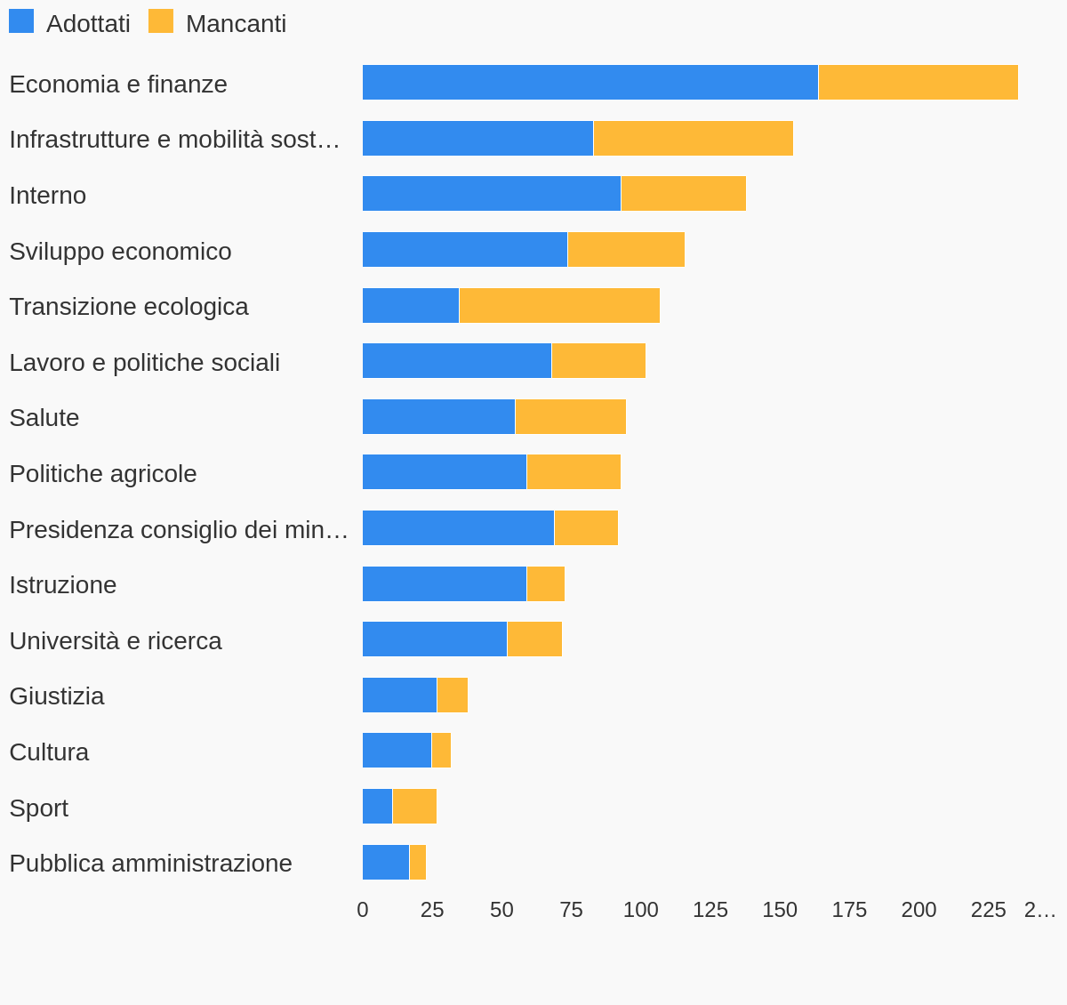 Per transizione ecologica e sport mancano più della metà delle attuazioni richieste.