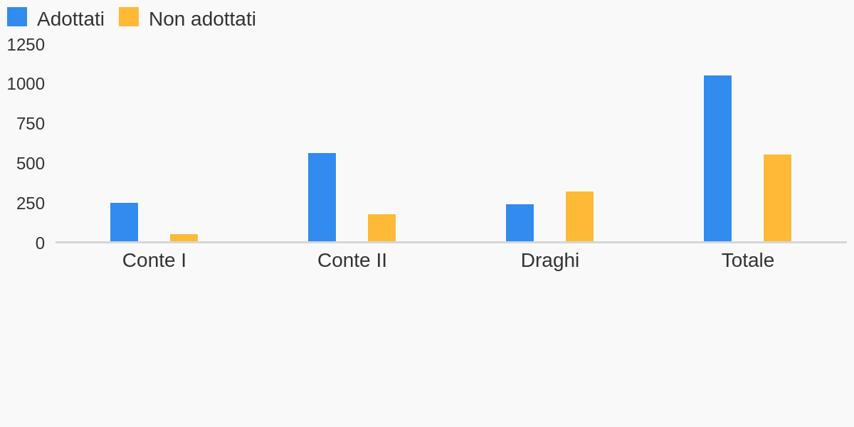 Numero di decreti attuativi pubblicati e mancanti in base ai governi della XVIII legislatura