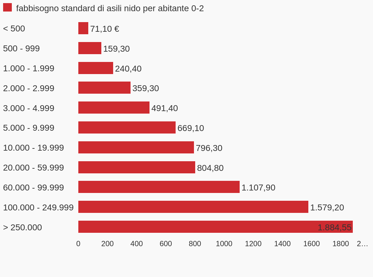 I territori con più abitanti sono gli stessi ad avere un maggior numero di bambini e quindi un'offerta più ampia di asili nido. La maggiore spesa di queste amministrazioni nel settore fa sì che il fabbisogno che viene loro riconosciuto sia più alto, rispetto a quello di comuni più piccoli. Questo dimostra ancora una volta che lo strumento del fabbisogno standard non è efficace per individuare la reale necessità dei territori, rispetto a determinati servizi.