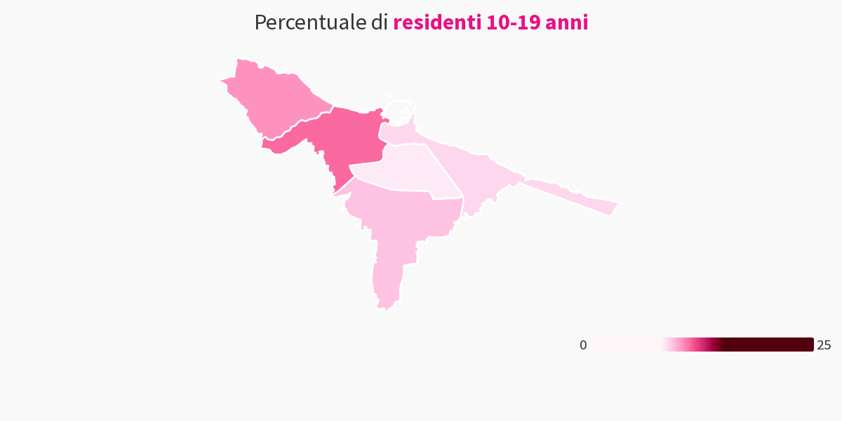 Percentuale di residenti tra 10 e 19 anni (2021)