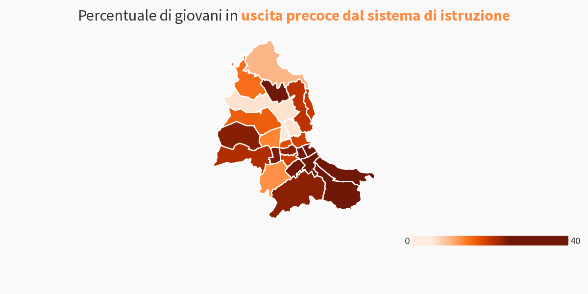 49,4% la quota di giovani usciti precocemente dal sistema scolastico con genitori senza diploma nel quartiere di Palazzo Reale-Monte Di Pietà.