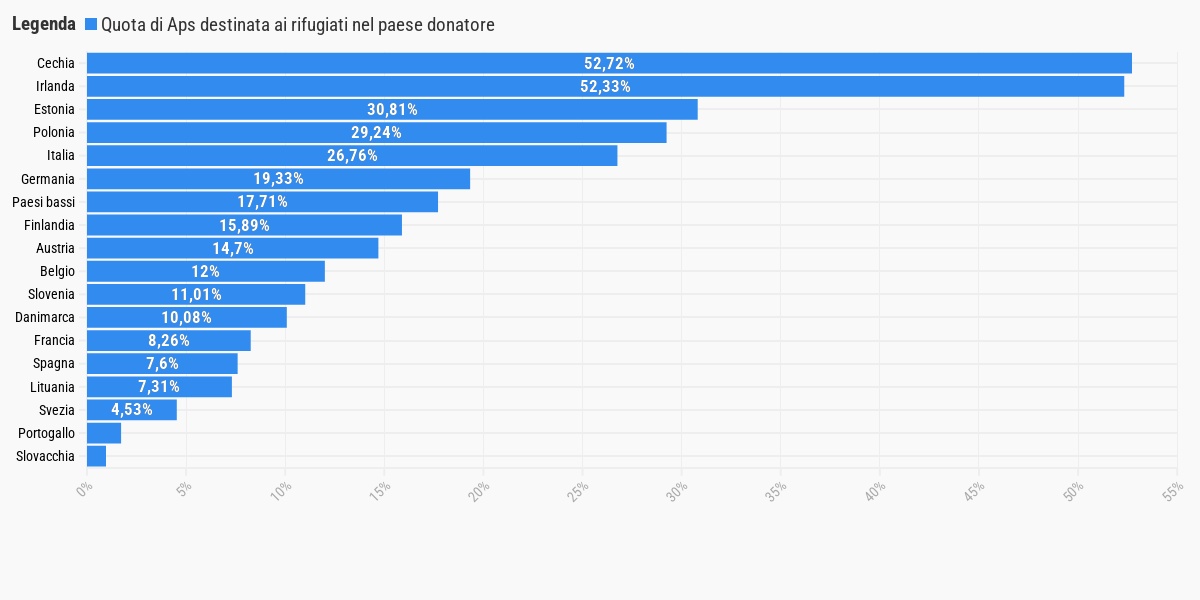 L’Italia al quinto posto in Europa per quota di Aps destinata ai rifugiati nel paese donatore