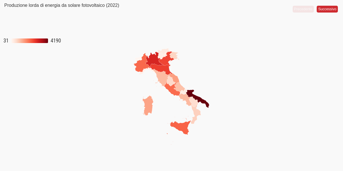La produzione di energia da fotovoltaico nelle regioni italiane