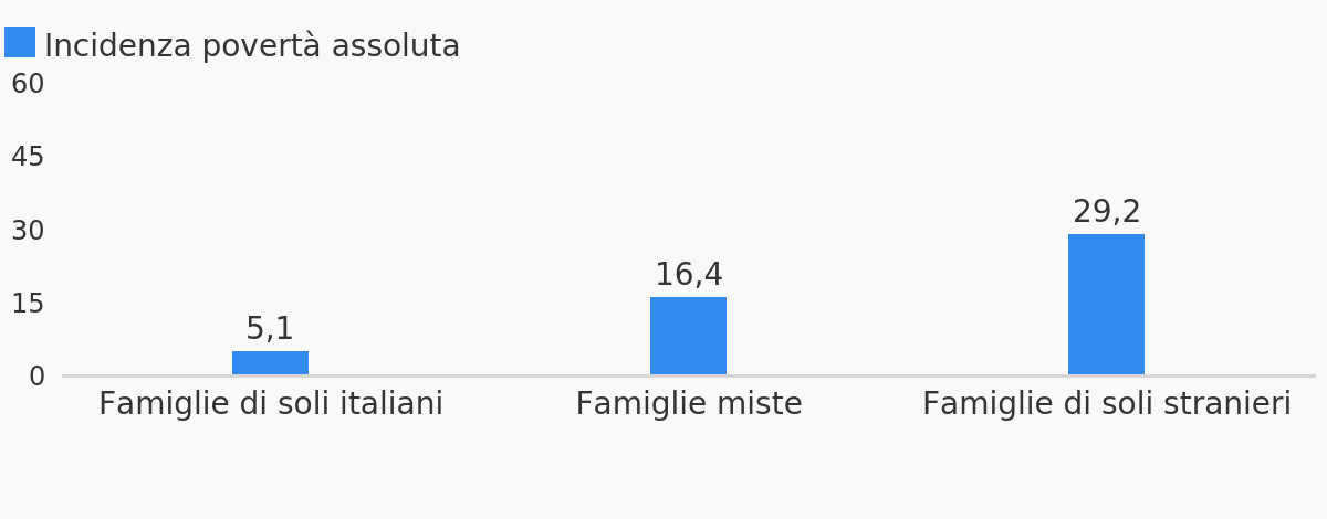 Incidenza della povertà assoluta per presenza di stranieri nel nucleo familiare (2017)