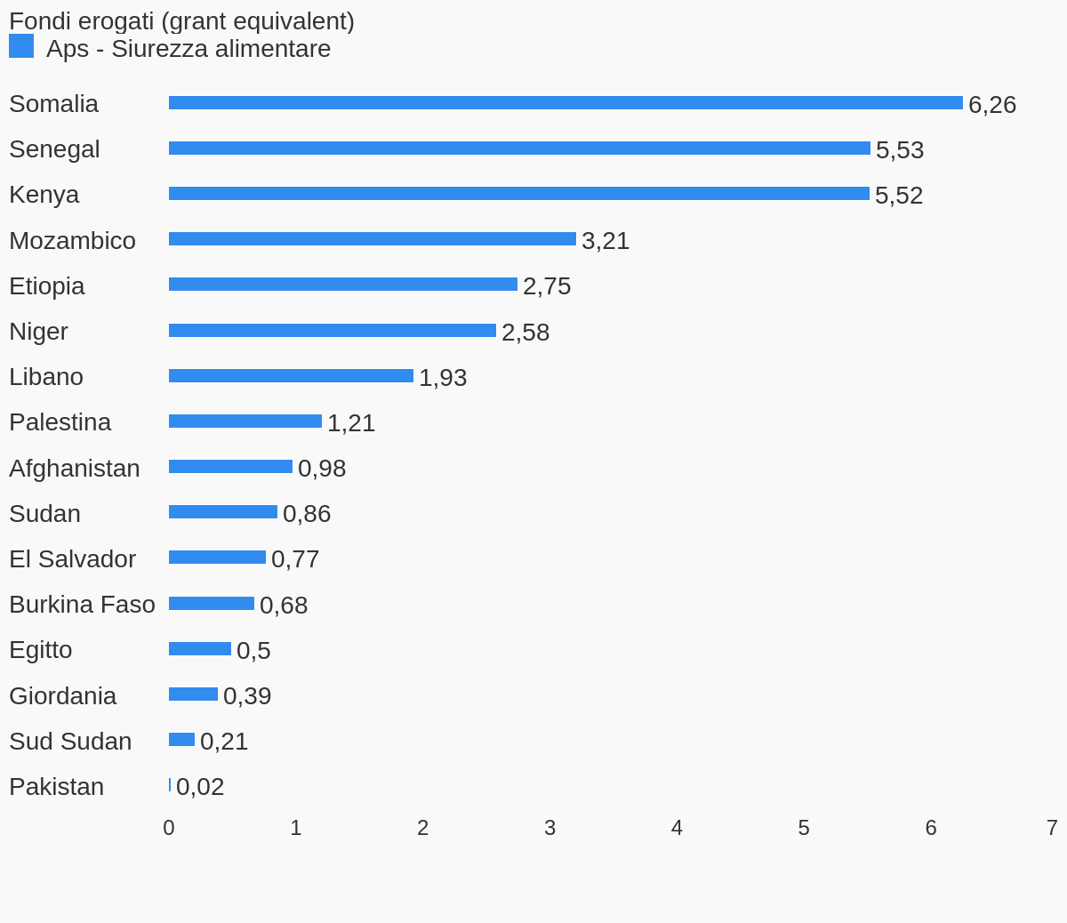 L'Aps destinato alla sicurezza alimentare nei 17 territori che rientrano sia nella lista dei paesi prioritari per il nostro paese sia tra quelli in cui parte della popolazione si trova in condizione di crisi alimentare, di emergenza o di carestia.