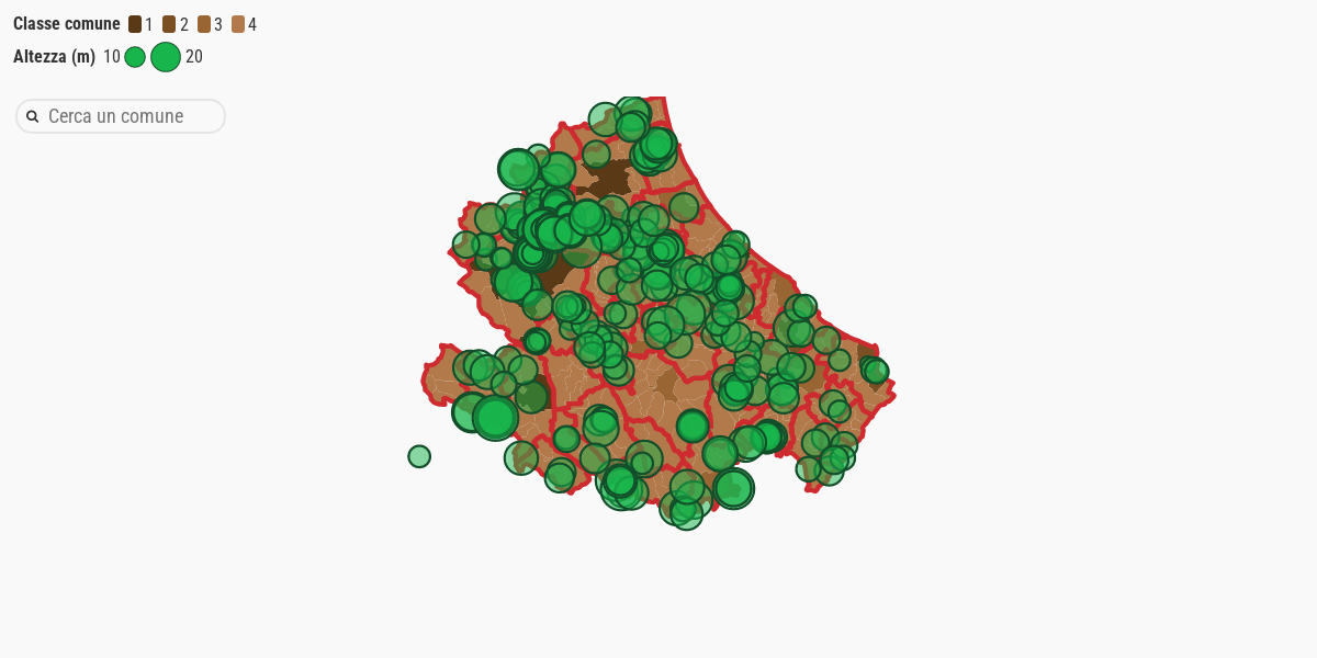 Dato questo contesto, la mappatura della presenza degli alberi monumentali deve essere fatta alla luce della specificità del territorio abruzzese. Di conseguenza è stata utilizzata la classificazione Gssi per comprendere meglio la distribuzione di questi esemplari sulla superficie regionale. Si tratta di una metodologia che definisce delle micropolarità comunali sulla base di alcuni servizi considerati come essenziali.