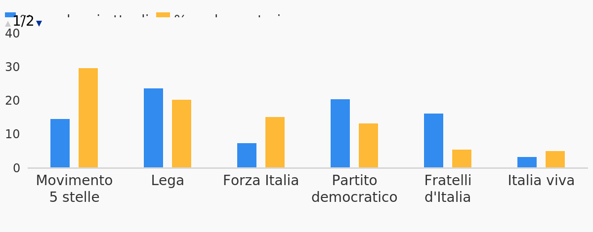 Abbiamo visto come i rapporti di forza tra i vari partiti siano in costante evoluzione e, soprattutto, come siano cambiati molto rispetto alle elezioni del 2018 che hanno determinato la geografia dell'attuale parlamento. Per quanto riguarda la coalizione di governo la prima forza, in base ai sondaggi, sarebbe il Pd (peraltro uscito rinforzato dalla tornata elettorale di settembre) ma in parlamento il primo partito resta il Movimento 5 stelle.