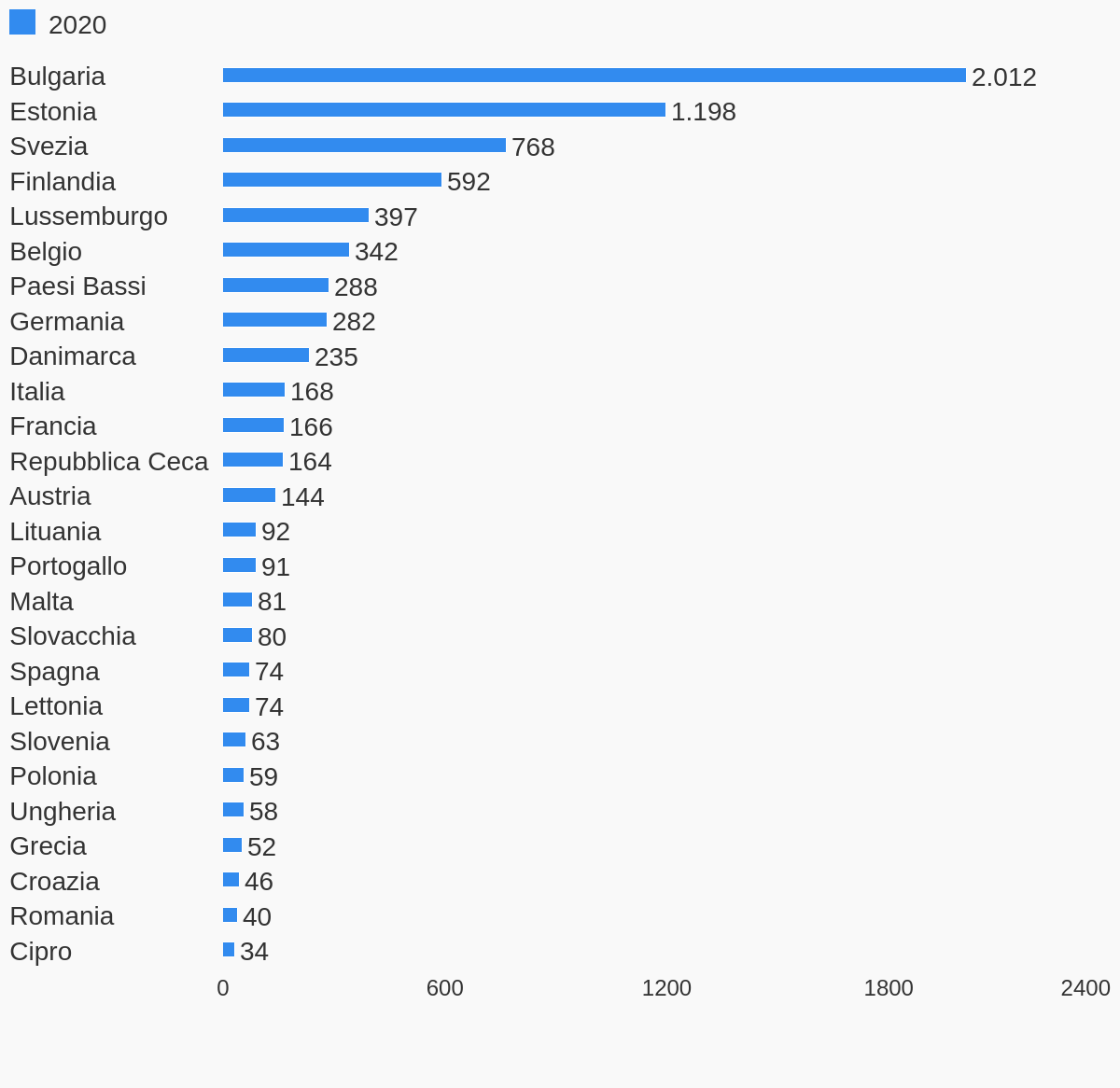Nel grafico manca il dato dell’Irlanda, che non risulta presente alla data di consultazione del dataset. Il valore della Grecia per il 2020 è una stima ancora non confermata. Per quel che riguarda invece il dato dell’Estonia al 2020, è di difficile confronto con il 2010 dal momento che sono cambiate le metodologie di rilevazione nell’ultimo anno considerato. Sono inclusi sia i rifiuti pericolosi urbani che quelli speciali.