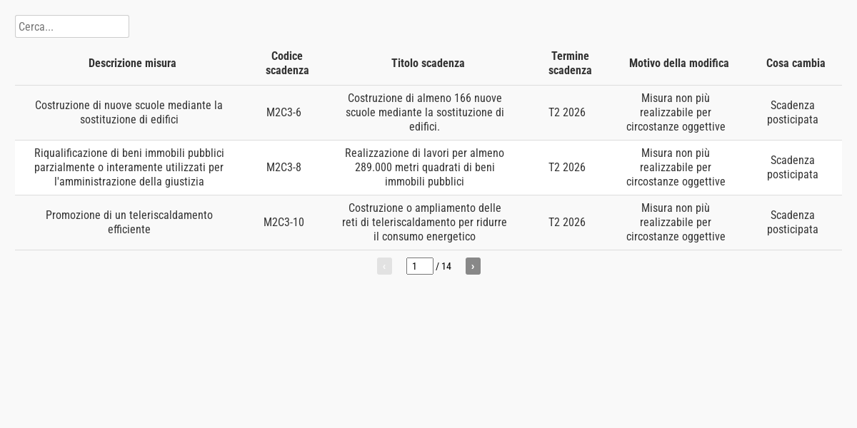 Per quanto riguarda il primo aspetto, la modifica più impattante è la revisione temporale delle scadenze. In 13 casi infatti gli obiettivi finali sono stati posticipati all’ultimo momento utile, vale a dire il 30 giugno 2026.