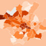 La mappa riporta la quota di residenti tra 10 e 19 anni nelle diverse aree subcomunali di Firenze. Più scuro è il colore, maggiore è la percentuale di residenti adolescenti.