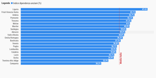 In Abruzzo ci sono circa 40 persone anziane ogni 100 in età attiva