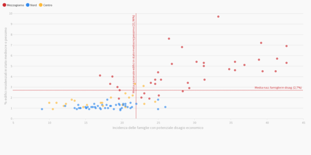 Nel mezzogiorno più famiglie in disagio e abitazioni in cattive condizioni
