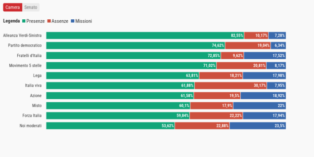 Nella XIX legislatura diminuiscono le assenze ma aumentano le “missioni”