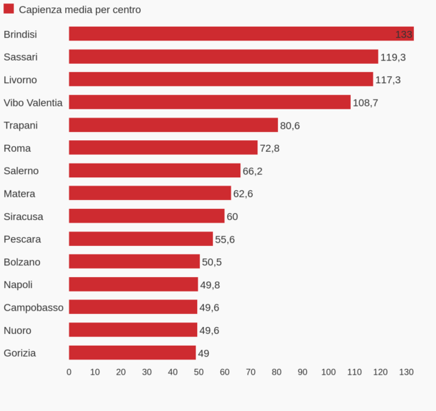 I Cas con una capienza media maggiore si trovano soprattutto nelle province del sud