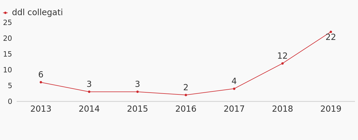 Per gli anni 2015, 2016 e 2017 è mostrato il numero di disegni di legge collegati alla manovra approvati nell’anno, non essendo stato possibile ricostruire il dato esatto previsto dalla manovra.