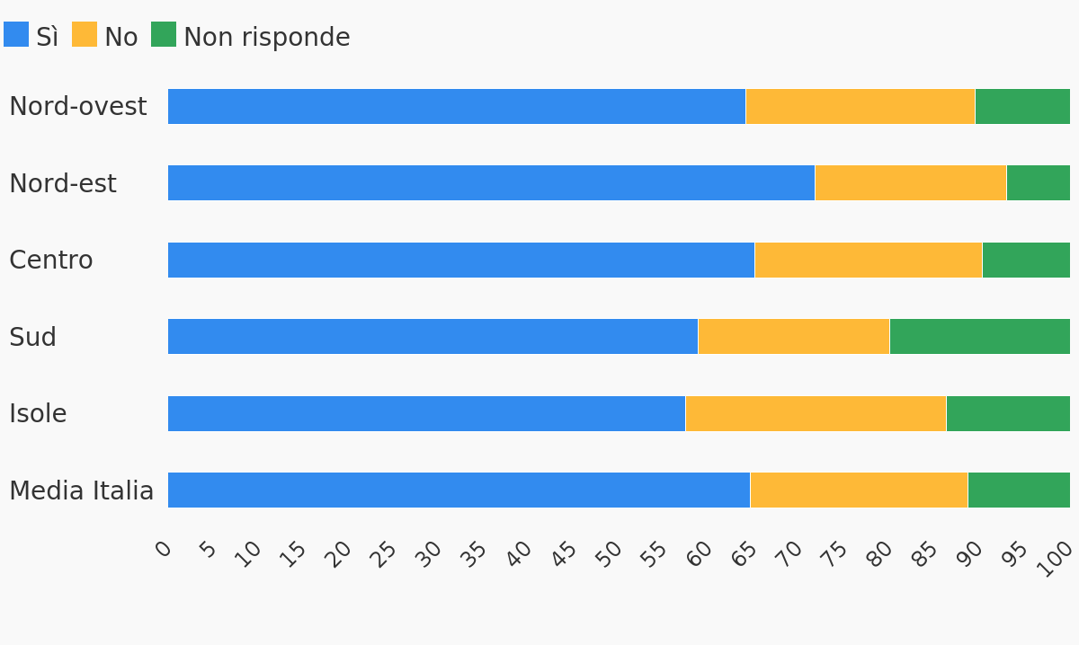 Rispetto alle diverse aree del paese, le attività didattiche sembrano essere meno frequenti nel mezzogiorno i (57,4% nelle isole e 58,8% nel sud continentale, contro una media italiana del 64,7%). D'altra parte anche in questo caso sul dato va considerata l'alta quota di non risposte alla domanda, soprattutto nel sud (19,9%).